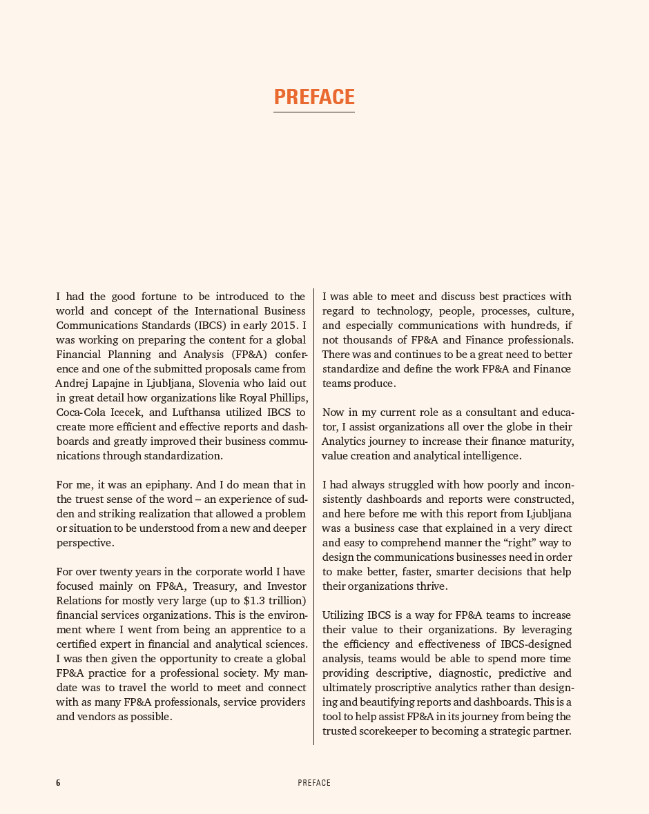 One of the constant challenges in achieving buy-in to any standard is generating enthusiasm and understanding for that standard. For IBCS, there can be no better tool of persuasion than ‘Solid, Outlined, Hatched’. This surprisingly readable book explains the ideas that give rise to each of the design rules in the IBCS standard. Peppered with relatable stories and examples from a wide variety of fields, this book is set to become a classic text on report and dashboard design.Bernie Smith, MadeToMeasureKPIs