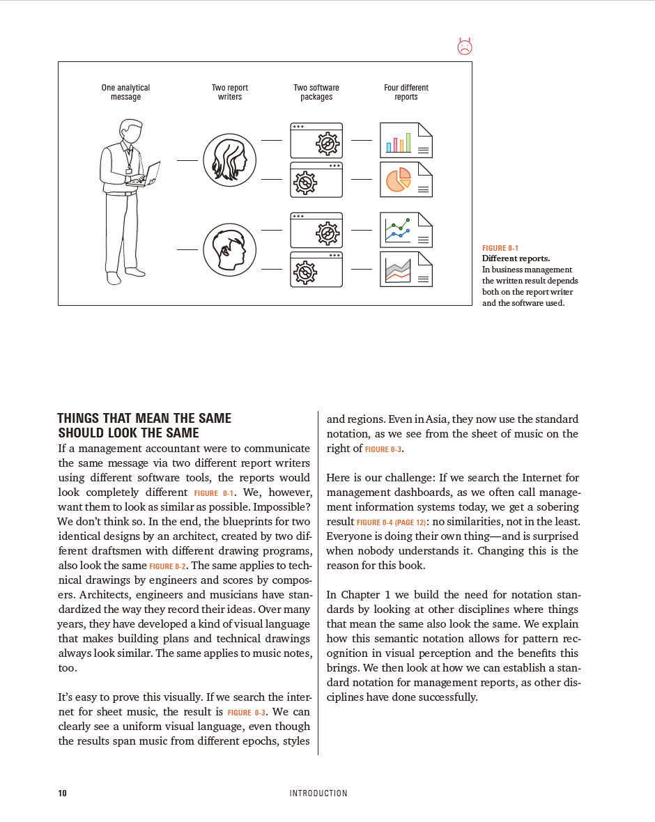 This reference book demonstrates how visual consistency improves communication with reports, presentations and dashboards. The authors transfer the principle of “notation standards” commonly found in many disciplines such as music or engineering to business communication. They develop a visual reporting language and apply it to the charts and tables used in business reports, presentation slides and interactive management information systems. Practical examples prove: They are on the right track.